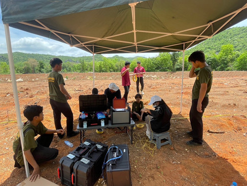 นายธเนศ นะธิศรี นำครูและนักเรียน วษท. ลงพื้นที่บริเวณบ่อธนาคารน้ำใต้ดินระบบเปิดของวิทยาลัย เพื่อศึกษาการใช้งานเครื่องมือธรณีฟิสิกส์ด้วยวิธีสำรวจความต้านทานไฟฟ้าจากการปล่อยกระแสไฟฟ้าลงใต้ดินดูสภาพโครงสร้างชั้นดินและชั้นหินหลังการขุดว่าตรงตามวัตถุประสงค์ของการขุดบ่อเพื่อเป็นบ่อเติมน้ำ หรือไม่