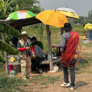 ทีมงานโครงการฯ นำทีมโดย นายธเนศ นะธิศรี กรรมการ ผู้จัดการโครงการ ลงพื้นที่ตำบลนาเพียง อำเภอชุมแพ จังหวัดขอนแก่น ร่วมกับ ผศ. ดีเซลล์ สวนบุรี ผู้เชี่ยวชาญด้านการสำรวจธรณีฟิสิกส์ คณะวิทยาศาสตร์ มหาวิทยาลัยเกษตรศาสตร์(มก.) ทีมกองช่าง และทีมงานป้องกันและบรรเทาสาธารณภัย เทศบาลตำบลนาเพียง เพื่อศึกษาความเป็นไปได้ในการตรวจสอบแหล่งกักเก็บน้ำใต้ดิน และทิศทางการไหลของน้ำใต้ดิน โดยใช้การสำรวจ 2 วิธี